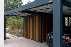 The Cubic was created out of the need for a flat roof, but one that also provides good protection from precipitation. This is how we developed the model, which has a double, stretched roof with a drainage system.