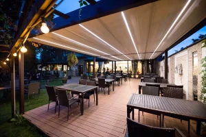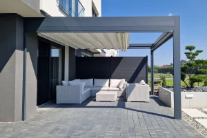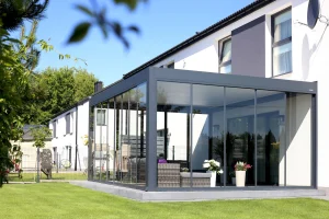 Essential is the economical version of the Technic model. It is not modularly extendable and is therefore more suitable for small and medium-sized terraces. A simple, but still very elegant and modern form of terrace roof.