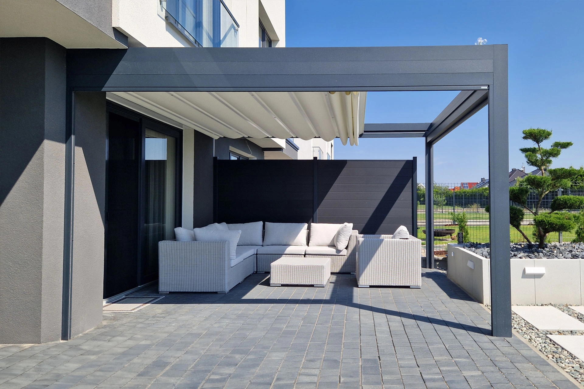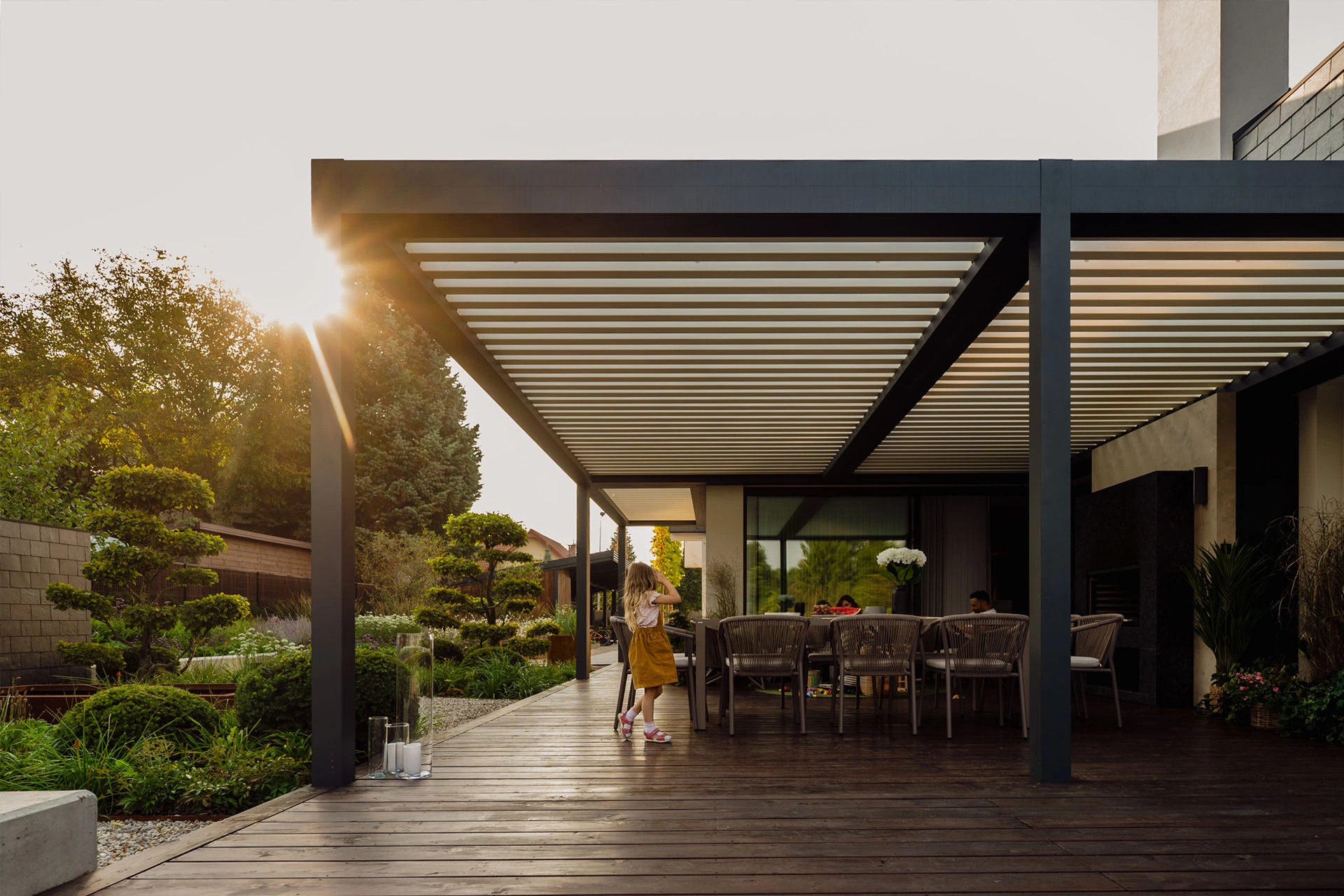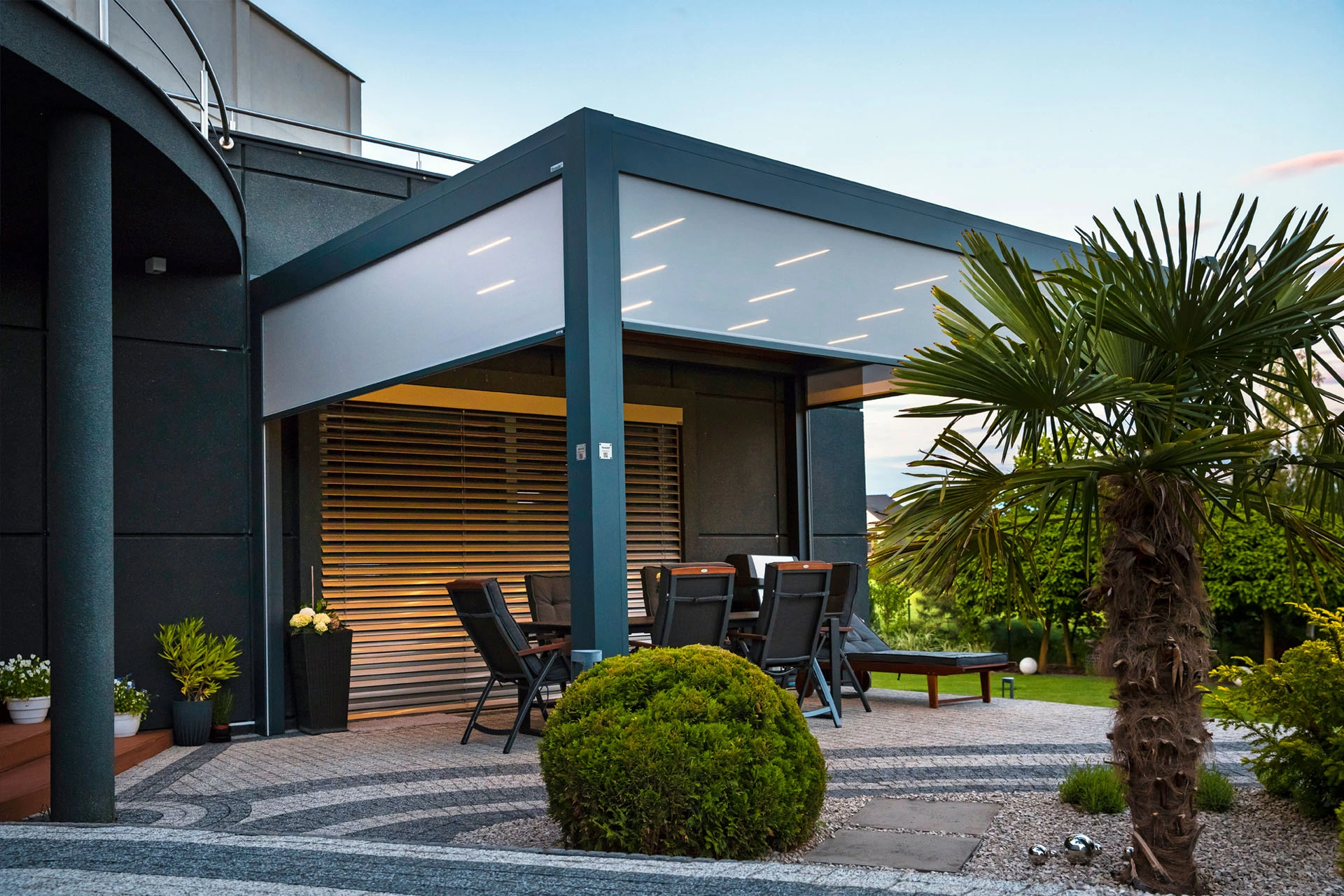Technic New is almost like Technic Pro, but without the integrated screener ZIP. A solid, elegant roof with the rotating louvres to protect against varying weather conditions.