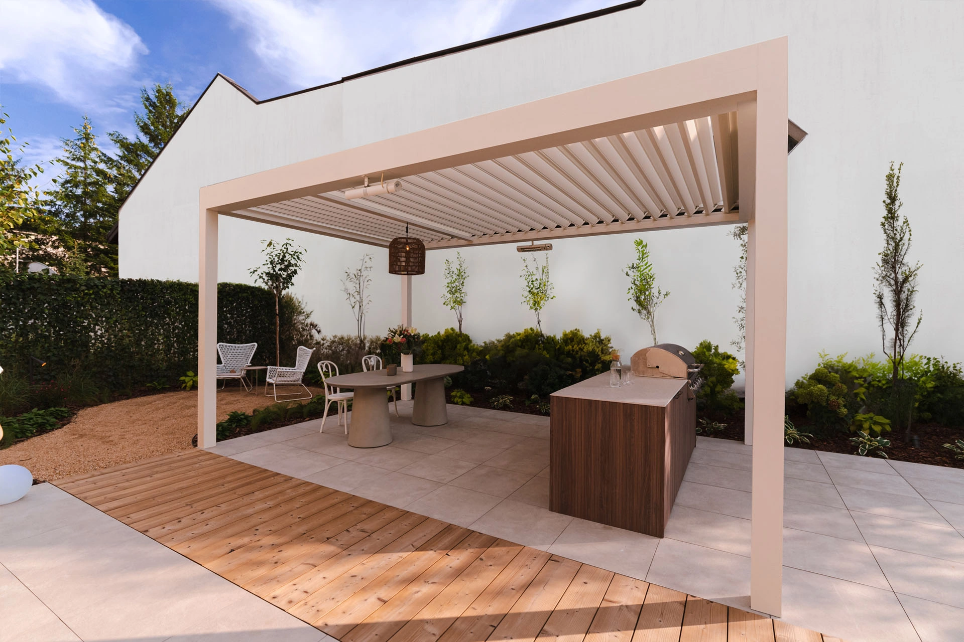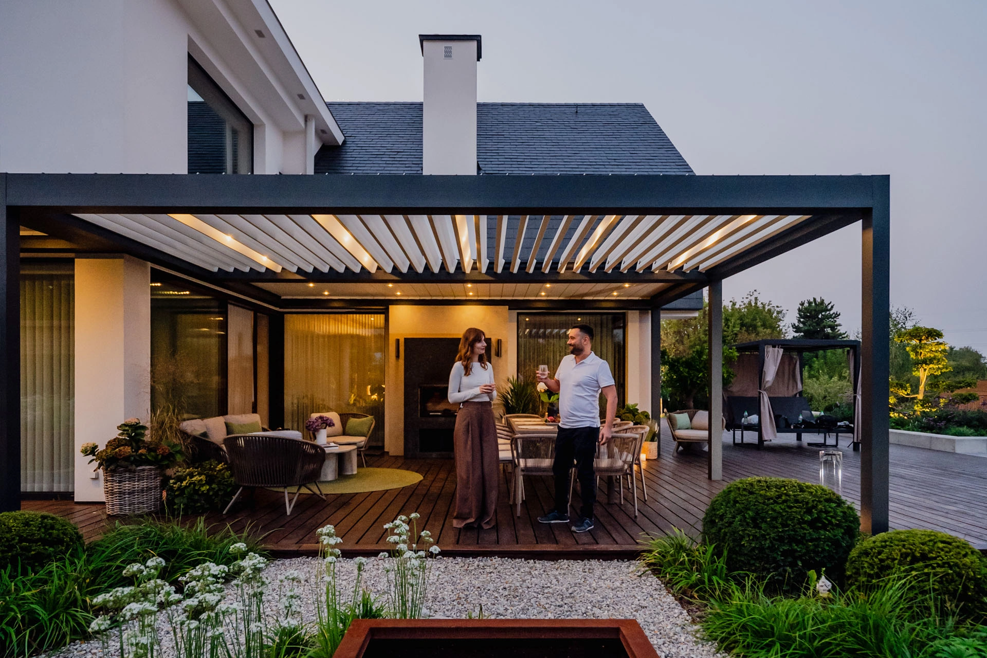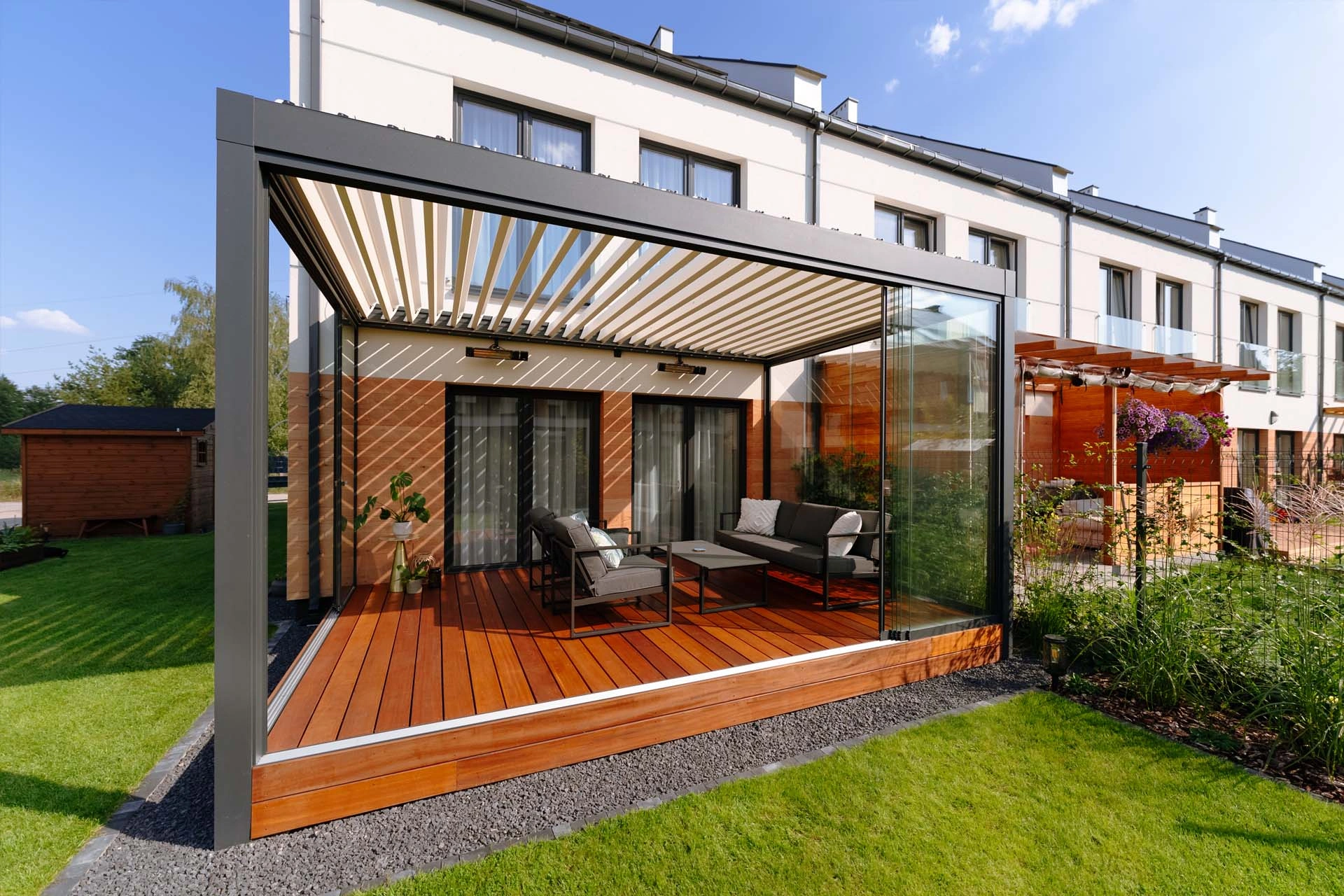 Technic New is almost like Technic Pro, but without the integrated screener ZIP. A solid, elegant roof with the rotating louvres to protect against varying weather conditions.